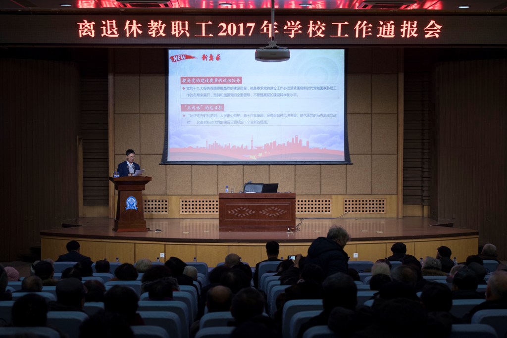 1月4日,学校在图书馆报告厅召开离退休教职工2017年学校工作通报会。校党委书记许才山,党委副书记、校长杨景海,党委副书记刘万民出席会议,相关部门负责人及300余名离退休老同志参加会议。会议由刘万民主持。