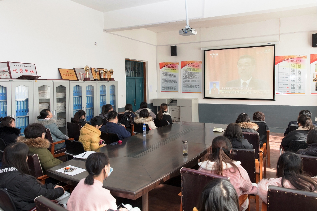 校领导等观看十三届全国人大一次会议开幕实况直播