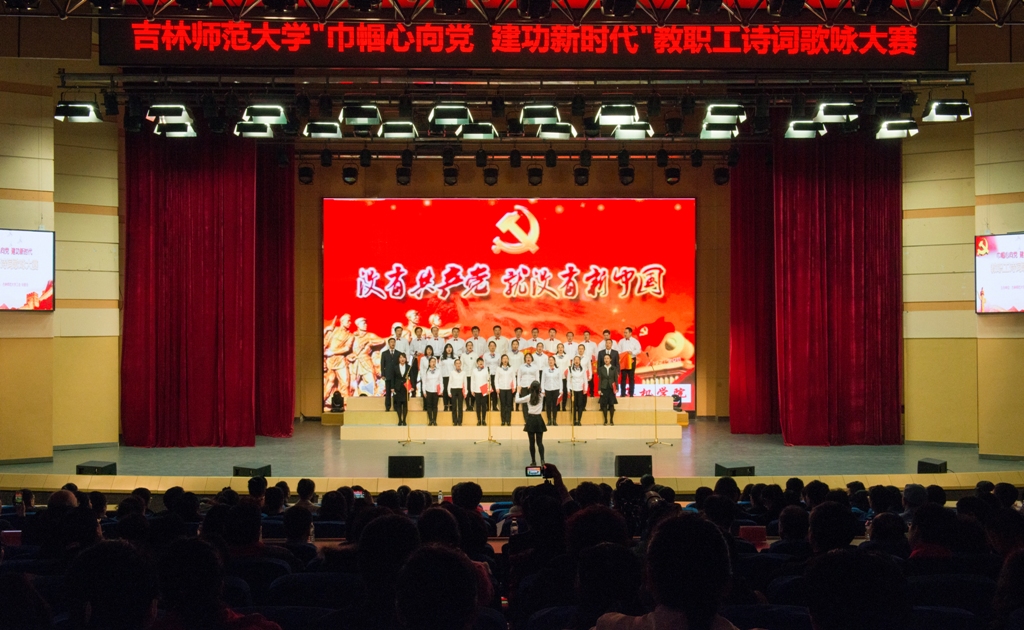 为深入学习贯彻党的十九大精神,喜迎学校60华诞,引领广大教职工不忘初心跟党走,建功立业新时代,近日,太阳成官网举办了“巾帼心向党建功新时代”教职工诗词歌咏大赛。学校党委副书记刘万民,党委常委、副校长曲殿彬,四平市妇女联合会主席杨丽红,四平市总工会副主席霍旭东,四平市教科文卫体工会主席李春宝等应邀观看比赛并为获奖单位颁奖。