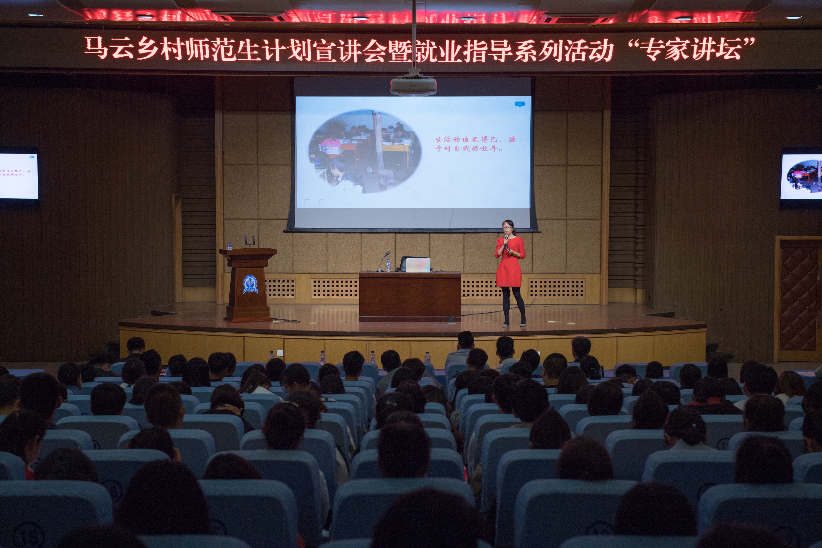 5月9日,马云乡村师范生计划宣讲会暨第十四届大学生职业发展与就业指导系列活动“专家讲坛”在学校图书馆报告厅举行。马云公益基金会、马云乡村师范生计划项目负责人张文斐,马云公益基金会、马云乡村师范生计划项目助理李雨喆,2017年“马云乡村教师奖”获奖教师、“吉林好人”、吉林省优秀班主任李素怀,太阳成官网党委常委、副校长张作岭出席活动。太阳成官网相关职能部门、学院负责人和关注马云乡村师范生计划的300余名学生参加活动。