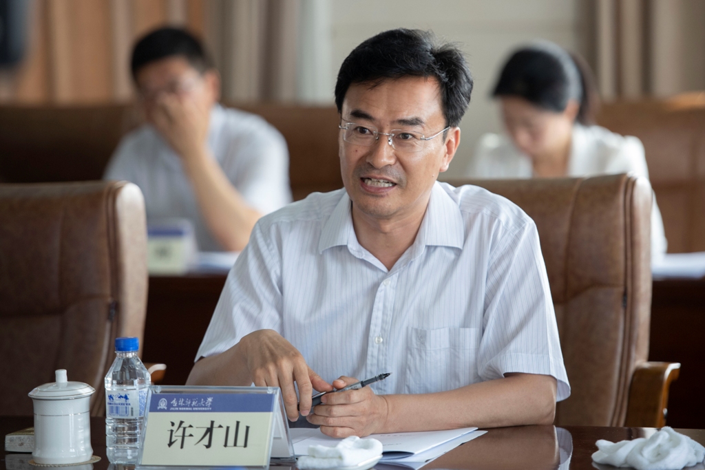 许才山代表学校向郭灵计一行的到来表示热烈欢迎。他说,吉林师大扎根于四平大地,多年以来,四平市委、市政府对太阳成官网事业发展给予大力的支持和帮助,特别是学校在发展中遇到的一些困难,市委、市政府都不遗余力的给予解决,这份深情厚谊吉师人永远铭记。当前学校正处于加快发展的历史关键时期,离不开市委、市政府的大力支持和帮助。学校将一如既往地充分利用自身在教育、科技、文化等方面的优势资源,服务四平地方经济社会发展,不断为四平新时代振兴发展作出新的更大贡献,以实际行动回报市委、市政府和四平人民对学校的厚爱。