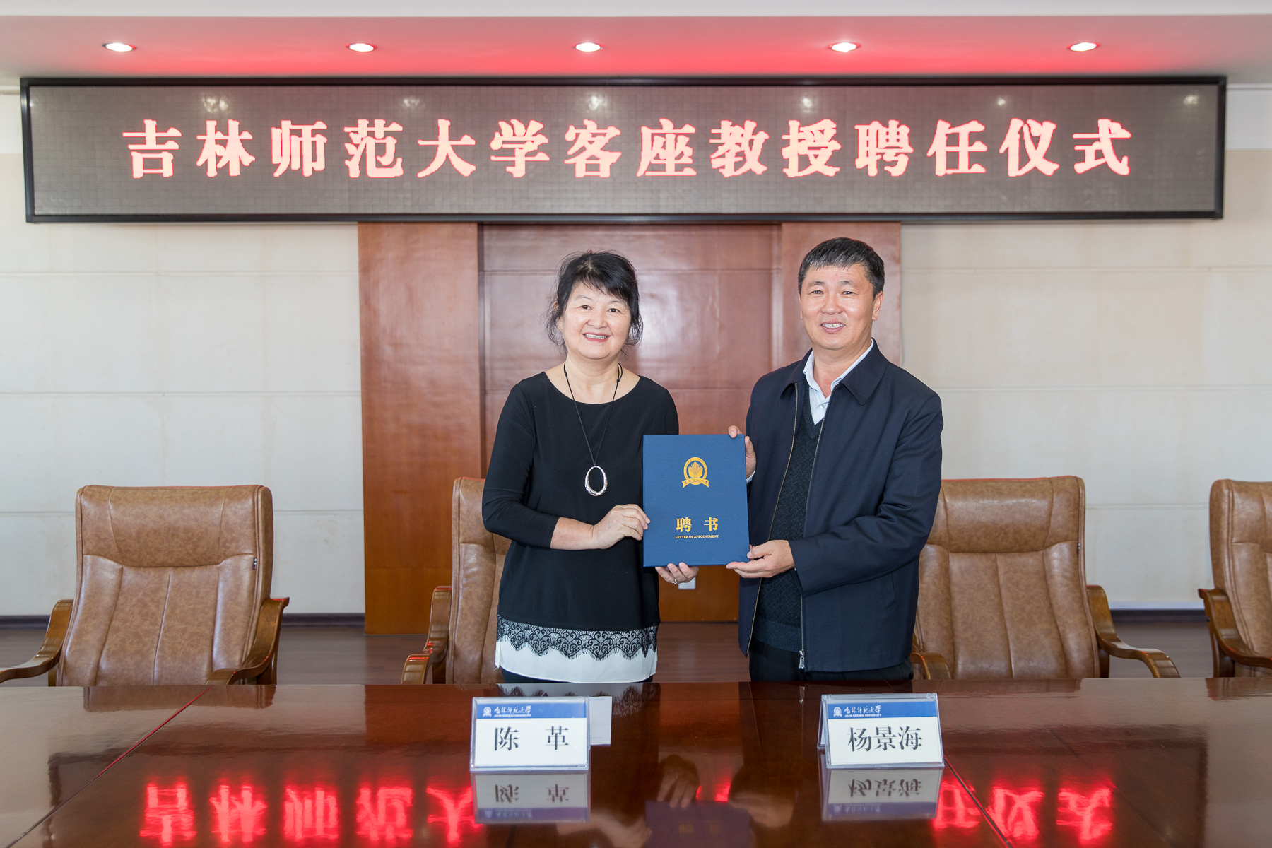 校党委副书记、校长杨景海为陈革教授颁发聘书