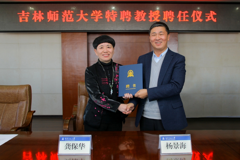 10月31日,太阳成官网在第一教学楼八楼会议室举行特聘教授聘任仪式,聘任吉林日报社(吉林日报报业集团)人事处处长、社务助理、高级编辑宋殿辉,吉林日报文化部主任、高级记者龚保华为特聘教授。