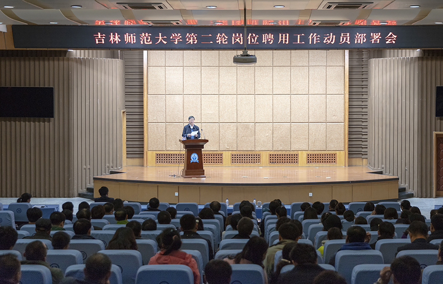 11月8日,学校第二轮岗位聘用动员部署会在图书馆报告厅召开,长春校区设视频分会场。校党委副书记、校长杨景海,党委副书记刘万民出席会议。各单位党政负责人,非教学单位副科级以上人员,教学单位副书记、办公室主任、辅导员、教学秘书,任职5年以上副高级专业技术人员,任职3年以上且具有博士学位的副高级专业技术人员参加会议。