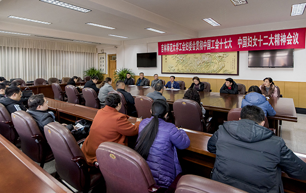 11月12日,学校贯彻中国工会十七大和中国妇女十二大精神会议在第一教学楼八楼会议室召开。校工会委员会委员、妇委会委员、各分工会委员参加了会议。