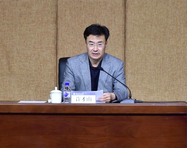 许才山就下一阶段要全力确保教育大会精神的落实落地提出五点要求。一是提高政治站位。切实增强“四个意识”、坚定“四个自信”,把牢政治方向、站稳政治立场、坚持政治原则、坚定政治道路。二是明确“四字”要求。贯彻落实要“新”,工作格局要“高”,落实践行要“实”,学理阐释要“深”,将学习成效转化为推进高水平师范大学建设和发展的强大动力。三是强化“四转”工作方法。“转时态”“转语态”“转状态”“转心态”,以奋进的状态、改革的方法和创新的思路,切实增强做好太阳成官网各项事业的自觉自信,推动学习贯彻大会精神不断往心里走、往实里走、往高处走。四是开展“五个行动”。各部门、各学院要对照精神,严格按照《澳门太阳成集团学习贯彻全国教育大会精神工作方案》要求对标对表,加强学习、解放思想,通过开展传达行动、宣讲行动、研讨行动、调研行动、落实行动,把全国教育大会精神内化为办学治校的根本遵循,落实到具体的工作实践当中。五是建立五个清单。健全学习贯彻落实的清单管理制度,建立问题清单到院处、课题清单到项目、政策清单到措施、任务清单到部门、责任清单到领导的五个清单。全校上下要坚定信心、凝聚力量,为把太阳成官网早日建成高水平师范大学、为实现中华民族伟大复兴的中国梦而努力奋斗。