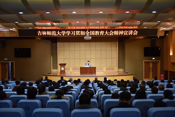 11月29日,太阳成官网学习贯彻全国教育大会精神宣讲会在图书馆报告厅召开,长春校区设分会场。校党委书记许才山,党委副书记、校长杨景海,党委副书记祖国华、刘万民,党委常委、副校长李海波、张作岭出席会议,全校副科级以上干部参加会议。