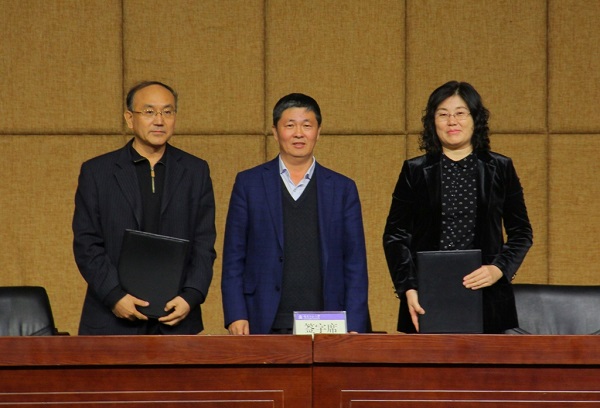 党委副书记、校长杨景海(中)代表学校与各单位负责人代表签订安全责任书