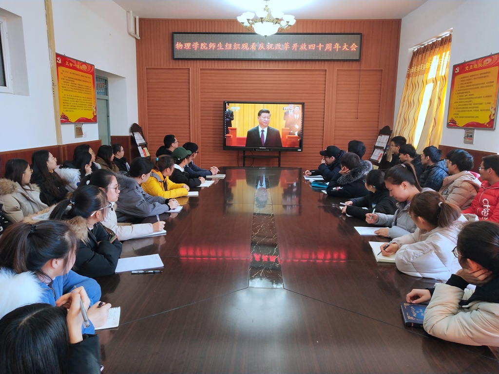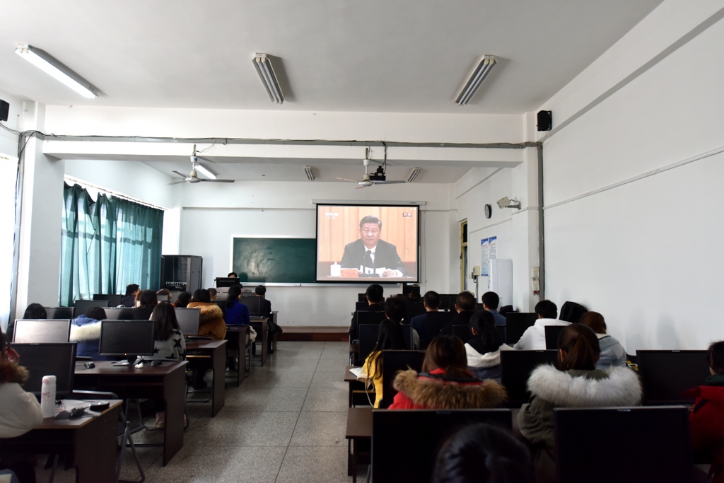 12月18日上午10时,庆祝改革开放40周年大会在北京人民大会堂隆重举行。中共中央总书记、国家主席、中央军委主席习近平出席大会并发表重要讲话。学校领导班子成员、机关部门负责人在第一教学楼八楼会议室集中收看大会现场直播,各学院分别组织师生员工通过电视、网络收看大会盛况。