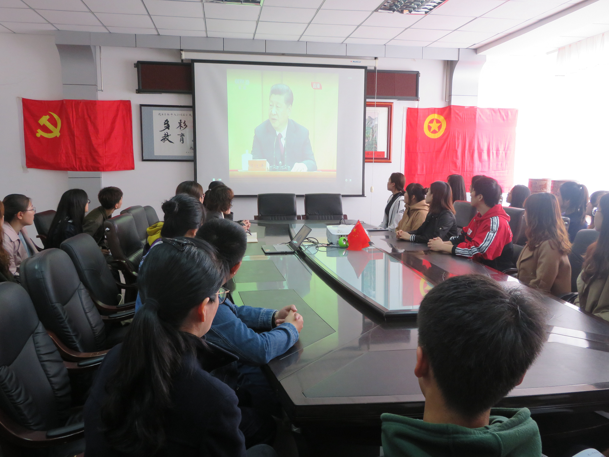 4月30日上午10时30分,纪念五四运动100周年大会在北京人民大会堂隆重举行。中共中央总书记、国家主席、中央军委主席习近平出席大会并发表重要讲话。学校领导班子成员、机关部门负责人在第一教学楼八楼会议室集中收看大会现场直播,各学院分别组织青年教师、学生骨干、团员、团干部通过电视、网络收看大会盛况。