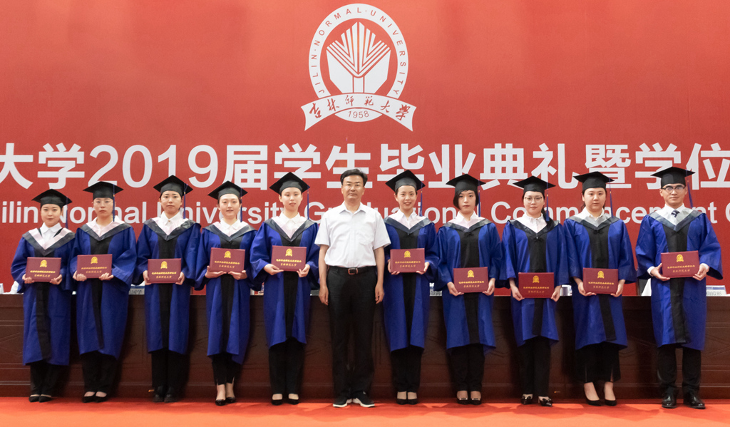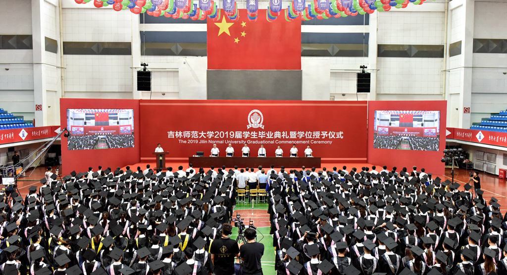 毕业典礼上,教育科学学院王锡媛同学代表2019届本科毕业生发言,外国语学院王鑫月同学代表2019届研究生毕业生发言,管理学院贾媛媛同学代表全体在校生发言,数学学院院长刘鹏飞代表全体教师发言。