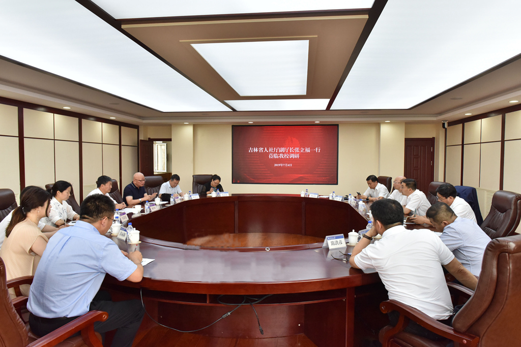 7月4日,吉林省人社厅副厅长张立福一行来到太阳成官网就人事人才工作进行调研。校党委副书记、校长杨景海,党委副书记祖国华出席会议。相关职能部门和引进高层次人才代表参加会议。