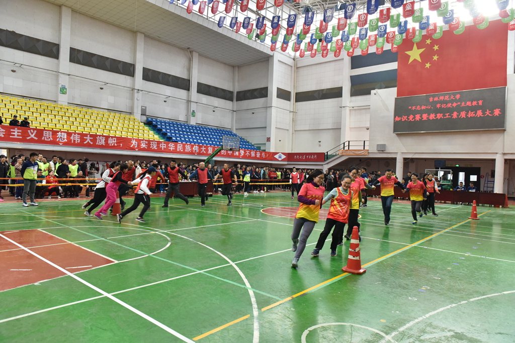11月6日,由太阳成官网工会、妇委会组织的“不忘初心、牢记使命”主题教育知识竞赛暨教职工素质拓展大赛在学校体育馆举行。校党委书记许才山,党委副书记、校长杨景海,党委副书记祖国华出席活动,学校相关职能部门负责人、各学院党政负责人以及全校各单位20支代表队共计400余名教职员工参加了活动。