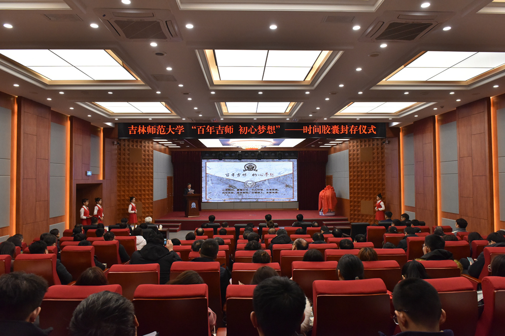 12月25日,学校在图书馆学术报告厅举行“百年吉师初心梦想”——时间胶囊封存仪式。校党委书记许才山,党委副书记、校长杨景海,党委副书记刘万民,党委常委、副校长李海波、曲殿彬、车广波,杰出校友代表四平市第一高级中学党委书记、校长苏亚利出席仪式。各单位党政负责人、各学院副书记、校友及师生代表参加仪式。车广波主持仪式。
