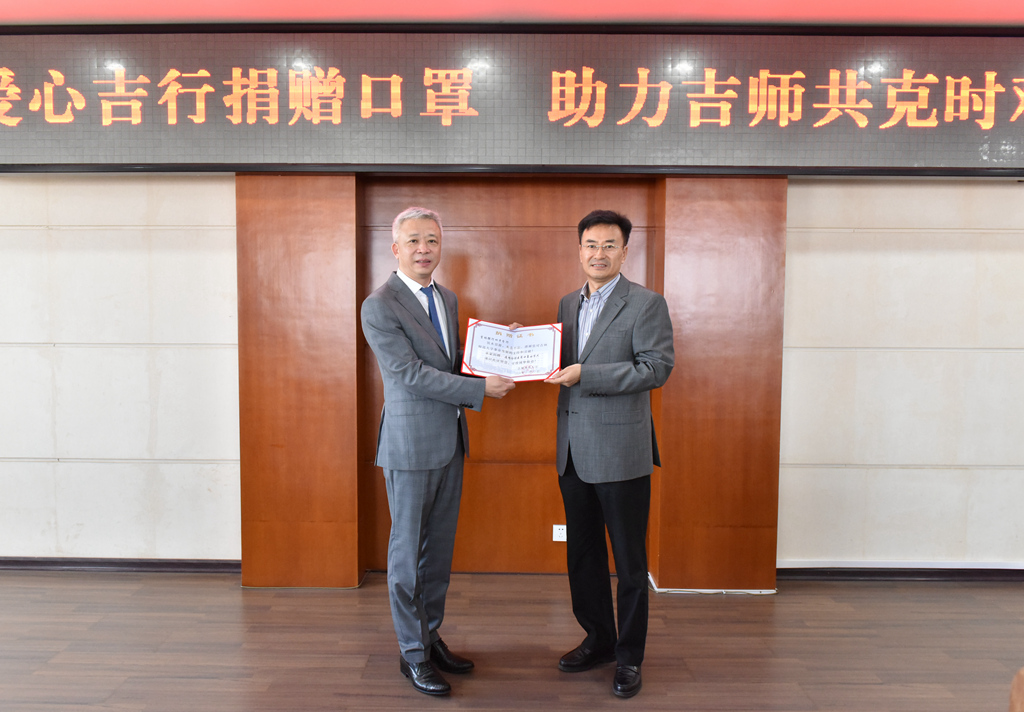 许才山代表学校向吉林银行四平分行的捐赠表示感谢。他指出,在省内疫情形势严峻的情况下,高校的复学复课和疫情防控工作面临着严峻考验,吉林银行四平分行的防疫物资捐赠对学校是雪中送炭,是在即将复学复课之际送来的关怀,为我们提供了疫情防控工作的强大助力,彰显了优秀企业的社会责任担当。学校将把这份温暖化作迎接复学复课大考的动力,充分用好每一份防疫物资,坚决打赢疫情防控人民战争、总体战、阻击战。