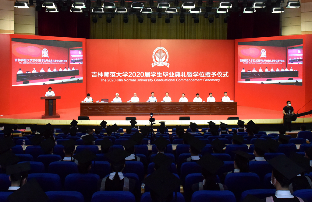 七月吉师,青春绚烂,桃李芬芳。7月6日,学校在音乐厅举行2020届学生毕业典礼。受疫情影响,本次毕业典礼采取“线上+线下”方式进行。校党委书记许才山,校长杨小天,党委副书记祖国华、刘万民,党委常委、纪委书记、监察专员侯奎岩,党委常委、副校长李海波、曲殿彬、张作岭、车广波,副校长赵经武出席毕业典礼;各单位党政负责人、各学院副书记、毕业年级辅导员和毕业生代表参加现场典礼仪式,广大师生、校友通过新华社现场云、“新四平”等平台直播方式参加“云典礼”。