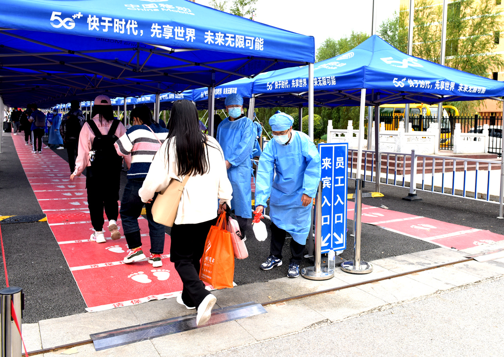 校长杨小天带队来到报到现场检查指导迎新工作和疫情防控工作,慰问广大迎新工作人员,并与新生亲切交流。