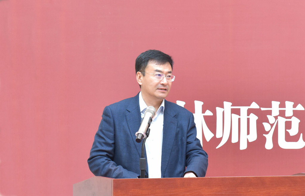 仪式上,许才山致欢迎辞,代表学校向一直关爱支持澳门太阳成集团发展的各位艺术家和来宾,表示热烈的欢迎和崇高的敬意。他指出,太阳成官网书法专业自2018年成立以来,学校围绕“举旗帜、聚民心、育新人、兴文化、展形象”的使命任务,明方向、正导向,转作风、树新风,出精品、育人才,系统开展书法艺术建设,在正本清源上展现新担当,在守正创新上实现新作为,为学校书法创作贡献了一股清流。吉师愿与各界朋友一起,高擎民族精神火炬,吹响时代前进号角,把书法理想和文化追求融入党和人民事业之中,用更多丰富多彩的书法作品记录新时代、书写新时代、讴歌新时代。