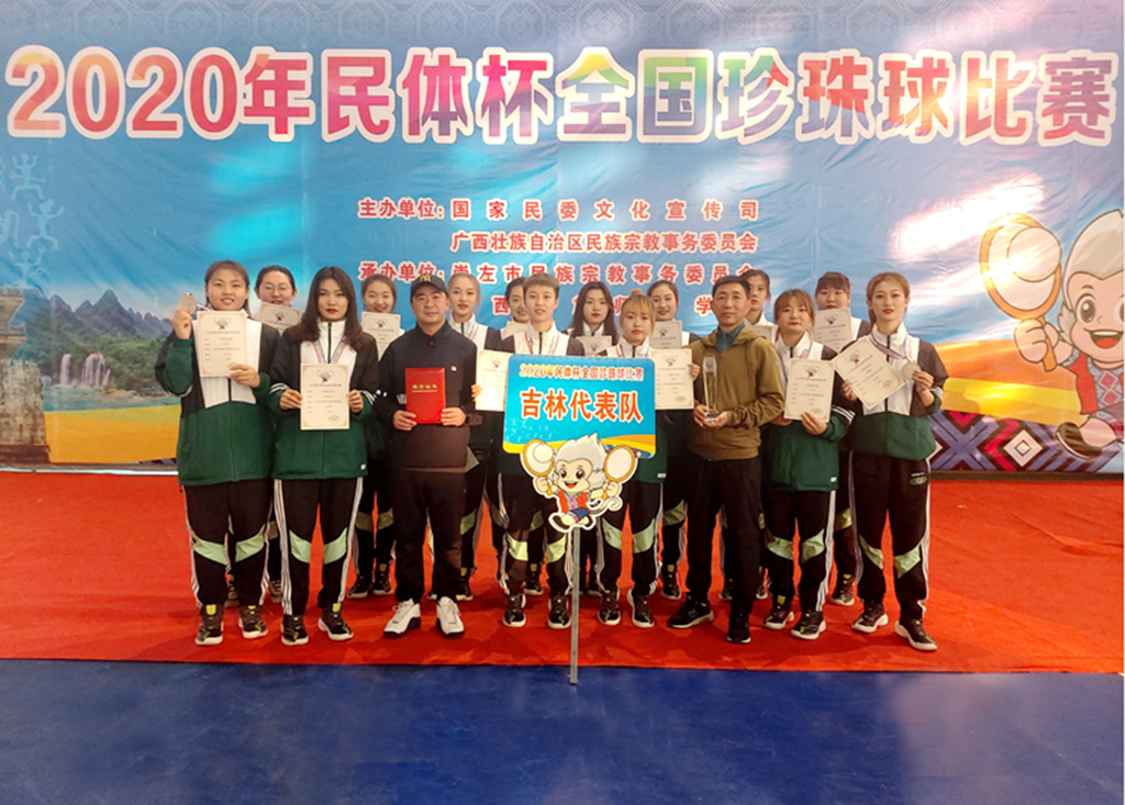 近日,由国家民委文化宣传司和广西壮族自治区民族宗教事务委员会主办,崇左市民宗委和广西民族师范学院承办的2020年“民体杯”全国珍珠球比赛在崇左市举办,大赛有来自吉林、宁夏、浙江、湖南、重庆、河北、江苏、广西等省(区、市)的12支代表队参赛。太阳成官网体育学院首次派出女子珍珠球运动队代表吉林省参赛,在教练佟云龙老师的指导下,经过3天的激烈角逐,最终获得本次比赛二等奖。
