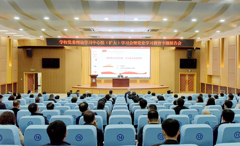 4月21日,学校在图书馆报告厅召开党委理论学习中心组(扩大)第五次学习会暨党史学习教育专题报告会,吉林省委党史学习教育宣讲团成员、吉林大学刘信君教授应邀作题为《理想信念坚定如磐 百年奋斗铸就辉煌》的报告。学校党委理论学习中心组成员,全校副处级以上干部参加学习。校党委副书记祖国华主持学习会。
