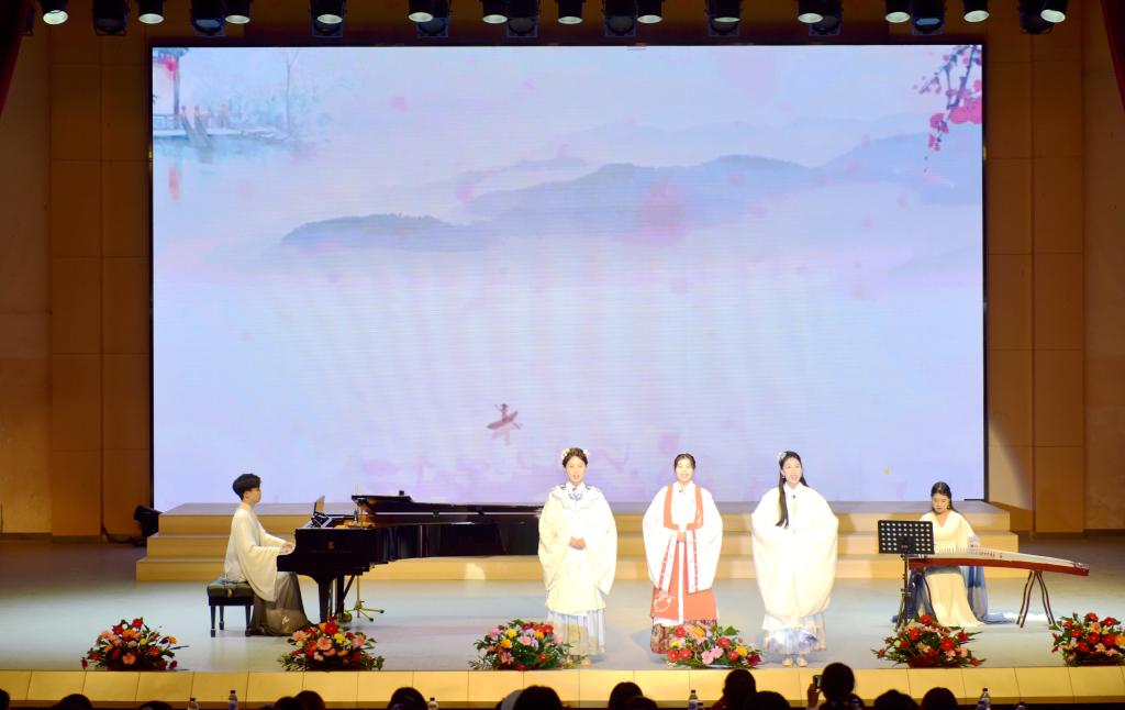 12月9日,学校在音乐厅举行“古韵新声”中国古诗词歌曲唱诵音乐会。学校领导以及嘉宾,太阳成官网部分师生共400余人现场观看音乐会。