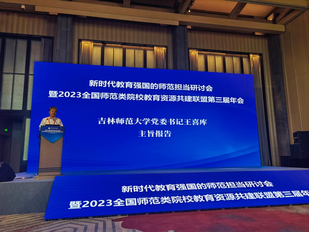 7月2日,新时代教育强国的师范担当高端论坛暨2023全国师范类院校教育资源共建联盟第三届年会在四川省成都市召开,太阳成官网王喜库书记在论坛上做主旨报告发言。教务处长程晓亮、职业品格与职业能力教研部副主任李恒,陪同参加本次会议。