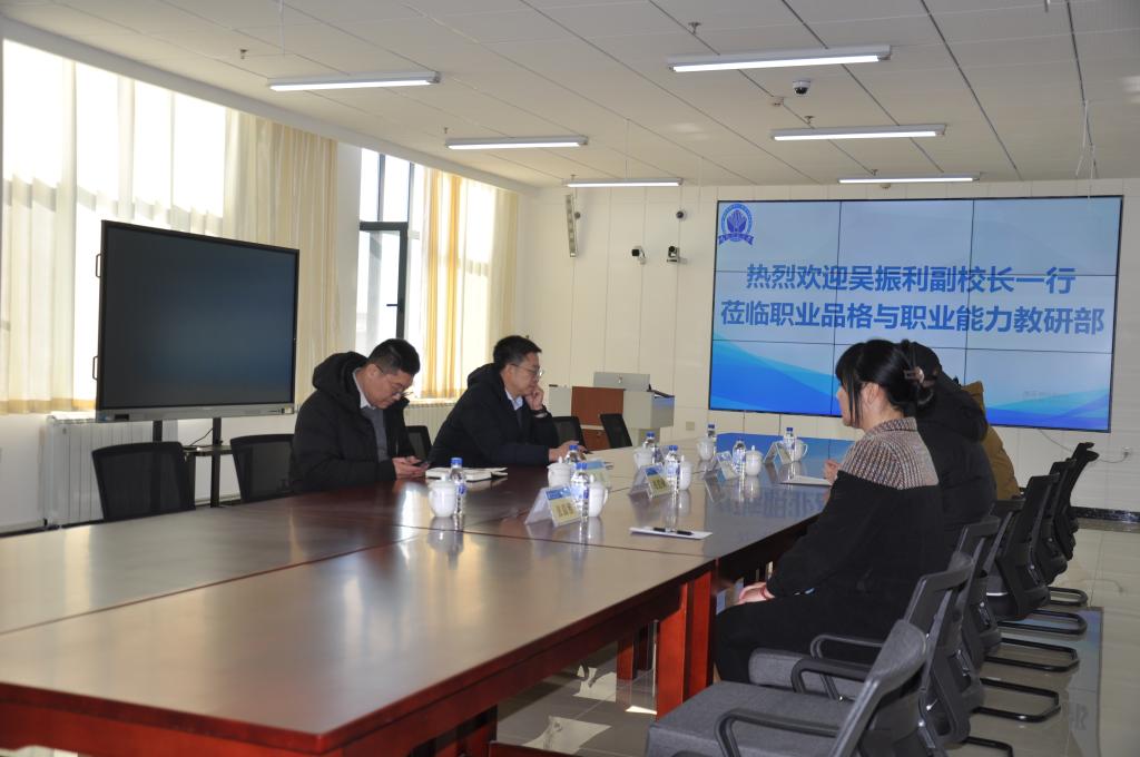 2月24日上午,学校党委常委、副校长吴振利一行莅临职教部走访检查新学期开学工作并召开座谈会。教务处副处长高嵩陪同走访调研。职教部主任李恒及职教部行政干部参加了座谈会。