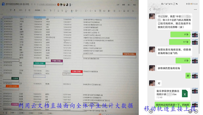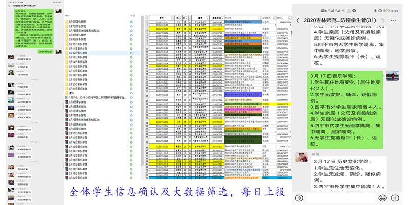 逐条审核数据,集中把控,与学生全员摸排定位,大数据做到每日更新,精准报备。