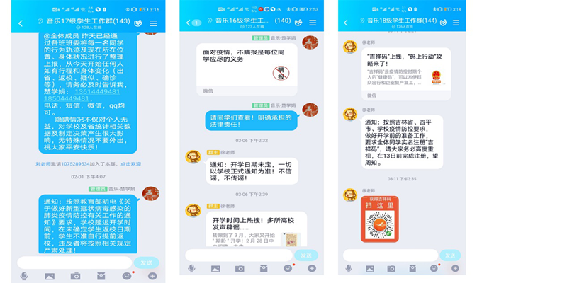 学生事务千万条,管理责任第一条。疫情发生以来,我院学生分布在全国各地,为能准确快速传达上级文件精神,辅导员老师与学生建立一对一对接,将排查和联络工作时刻抓在手里。