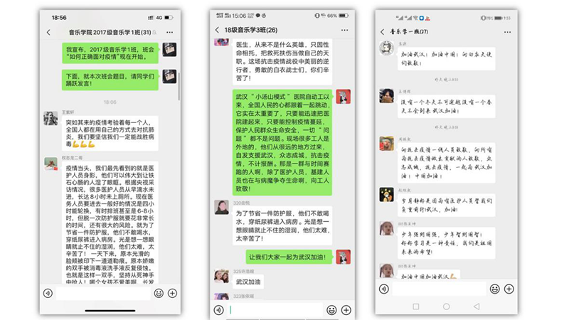 面对突如其来的新冠肺炎疫情,音乐学院高度重视,第一时间成立疫情防控工作领导小组,坚决贯彻落实中央、省、市和学校关于疫情防控工作要求,认真执行《澳门太阳成集团关于新型冠状病毒感染的肺炎疫情防控工作方案》及督查指导意见,落实责任,心系学生,凝心聚力做到“四结合”,在寒假疫情期间有效开展学生思政教育工作。