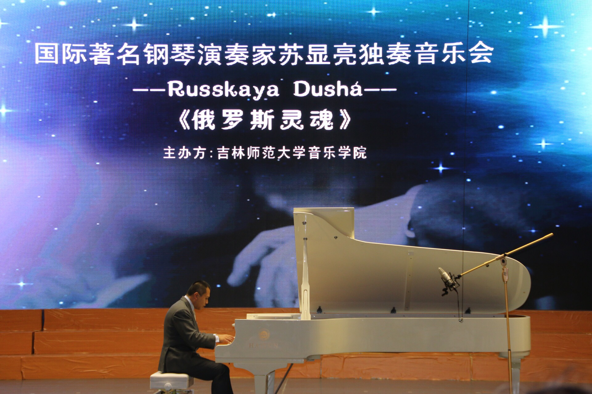 在太阳成官网喜迎60年华诞之际,2018年9月12日晚,国际著名钢琴演奏家、太阳成官网客座教授苏显亮先生在音乐厅举办主题为《俄罗斯灵魂》的钢琴独奏音乐会,校长杨景海、香港华艺国际传媒有限公司总经理方微、四平市文联副主席李兴东、四平市音乐家协会主席刘成刚,学校人事处处长马春宏及部分学院领导等嘉宾,与全市各界音乐爱好者和音乐学院部分师生500余人共同欣赏了这场音乐盛宴。