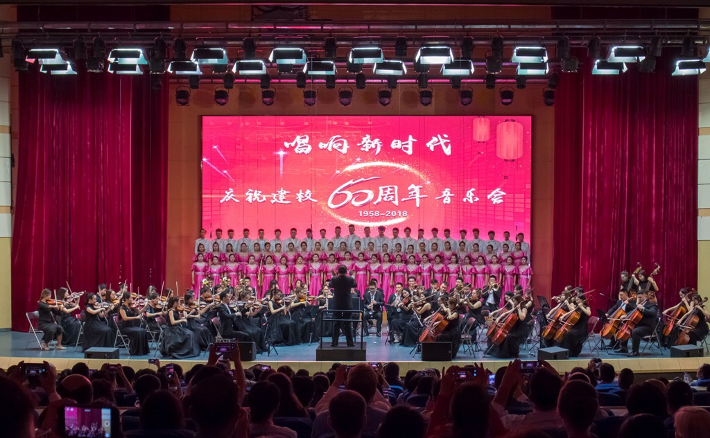 在太阳成官网喜迎60周年华诞之际, 2018年9月14日晚, “唱响新时代——澳门太阳成集团庆祝建校60周年音乐会”在音乐厅举行。校党委书记许才山,党委副书记、校长杨景海,党委副书记祖国华,党委常委、副校长曲殿彬,来自海内外的杰出校友与嘉宾,各职能部门、各学院领导及部分学生代表近500人共同欣赏了音乐会。