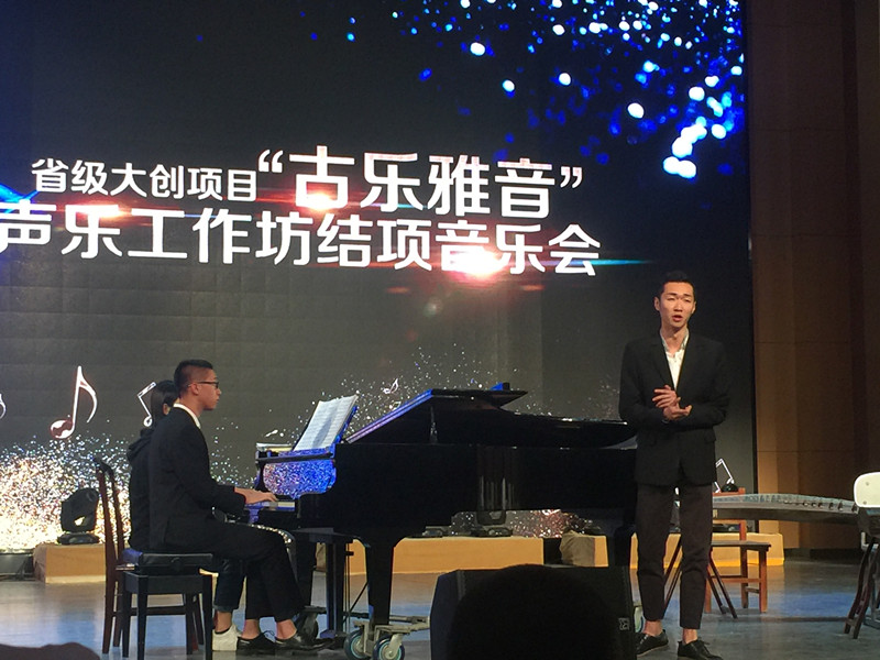 教育厅主管的“古乐雅音”声乐工作坊为我院的省级大学生创新创业项目,2017年6月获批,项目负责人为我院2016级音乐学专业李战美、张雨生同学,指导教师为王欢老师。“古乐雅音”声乐工作坊旨在推广和普及科学的声乐发声方法,秉承科学、传承与创新的精神,提高全民声乐艺术水平,促进声乐艺术的传承。