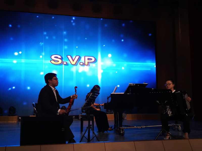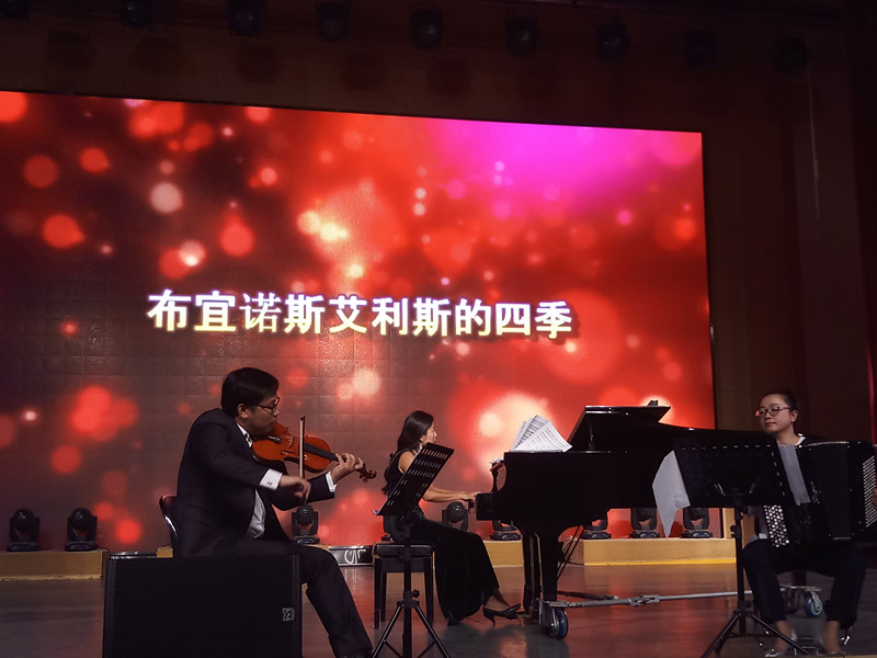 2018年6月5日晚,切分音室内乐团在音乐厅举办了“灵魂探戈”专场音乐会。该乐团由北华大学音乐学院副院长、硕士生导师聂卓副教授、东北师范大学音乐学院硕士生导师金玲副教授、吉林省交响乐团首席小提琴演奏员李健三位老师组成,这是该乐团在全省高校的巡回演出之一——澳门太阳成集团专场。我院院长胡晓伟教授、副院长任会平副教授、颜铁军副教授及部分师生观看了音乐会。