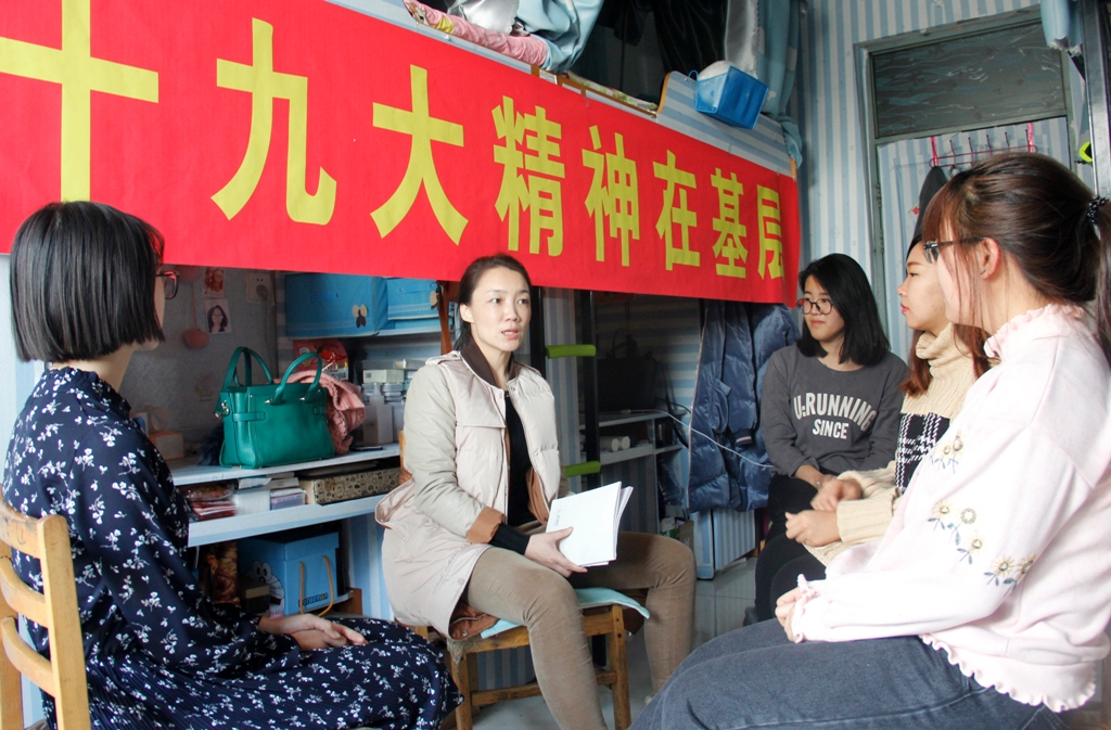 为使广大青年学生及时准确学习践行党的十九大精神,实现十九大精神学习宣传的全覆盖,11月29日,太阳成官网理论教育宣讲团开展主题为“坚定道路自信,牢筑信仰之基”的进宿舍宣讲活动。理论教育宣讲团成员、音乐学院党总支副书记闫薇老师来到音乐学院、文学院等学生的宿舍作十九大精神宣讲。