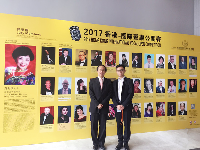 2.王欢老师与香港著名音乐家、本届大赛评判团副主席、香港中文大学音乐系讲座教授陈永华先生合影