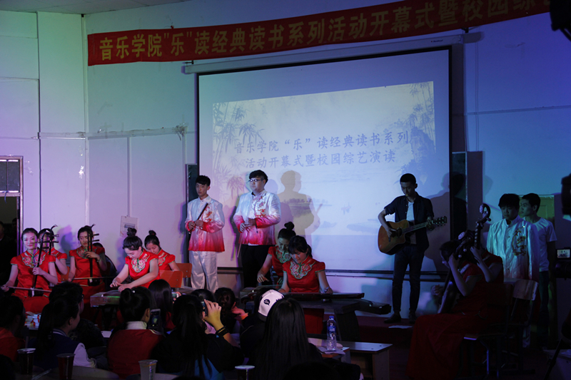 “校园综艺演读”是音乐学院“乐”读经典读书系列活动的第一项活动,根据活动安排,学院本学期还将举办配乐诗歌朗诵会、摄影与读书展、“好书我来读,好歌我来唱”和争创书香班团等系列活动。