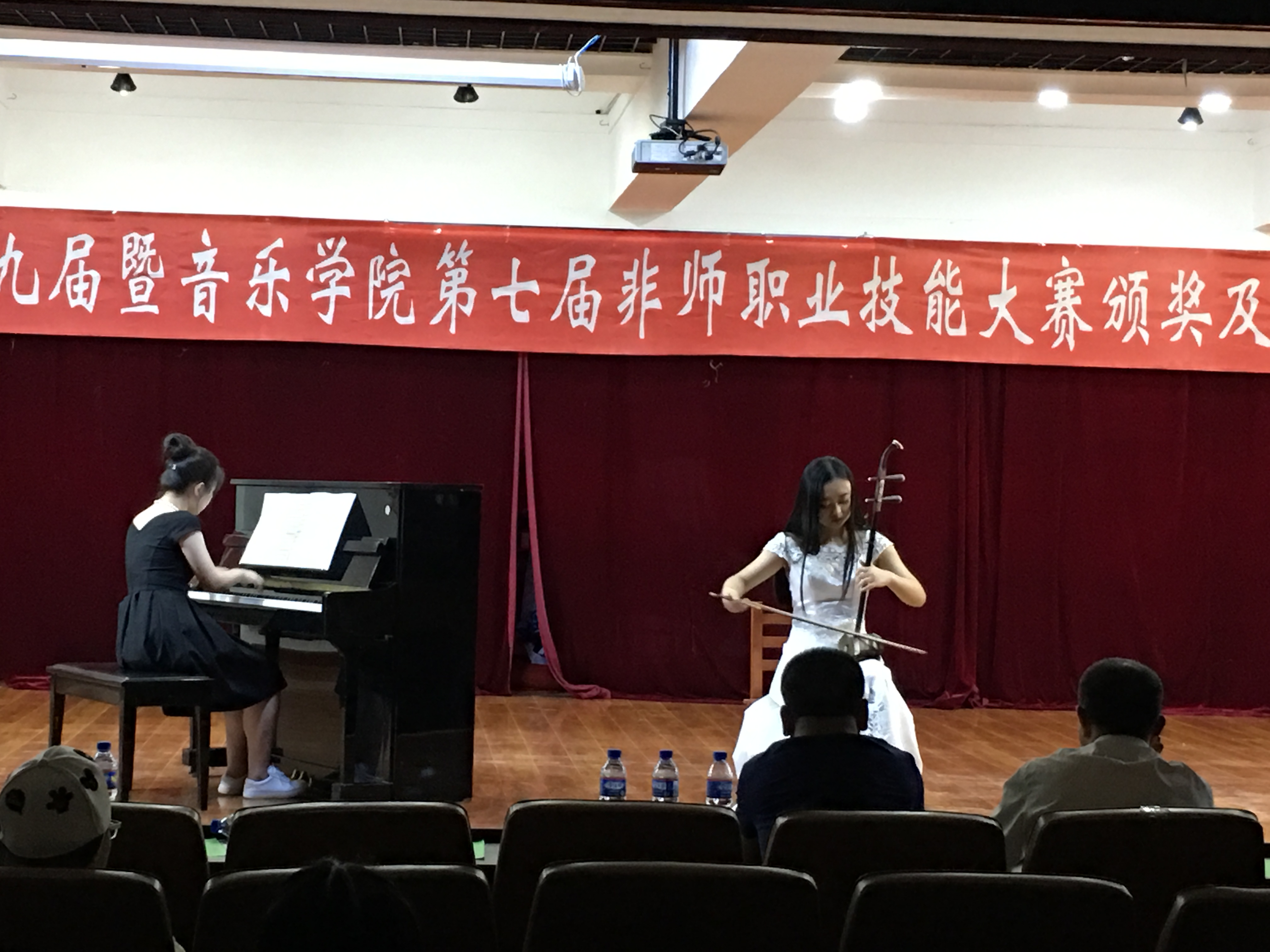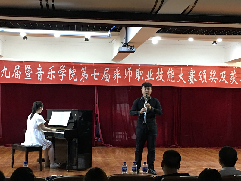 澳门太阳成集团第九届暨音乐学院第七届非师职业技能大赛从6月1日开始在我院举办,6月7日晚举行颁奖音乐会。院党总支书记陈明宏、院长胡晓伟、副院长任会平、颜铁军等领导和音乐表演系主任臧婉、实践教研室主任朱临吉等老师出席音乐会并为获奖选手颁奖,任会平致辞。颁奖仪式后,获奖选手作了汇报演出,富有感染力的演奏和演唱,展示了选手的技能与魅力,博得了阵阵掌声与喝彩。