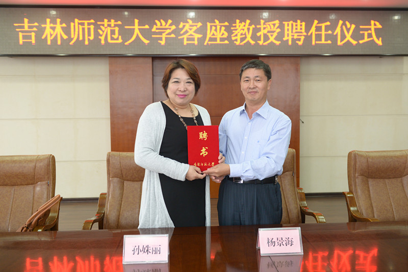 9月9日,学校在第一教学楼八楼会议室举行客座教授聘任仪式,聘任女中音歌唱家、吉林大学艺术学院教授孙姝丽女士和吉林省钢琴协会会长、吉林艺术学院教授唐明顺先生为太阳成官网客座教授。校长杨景海教授亲自为孙姝丽教授、唐明顺教授颁发了聘书,校纪委书记刘银善主持聘任仪式。