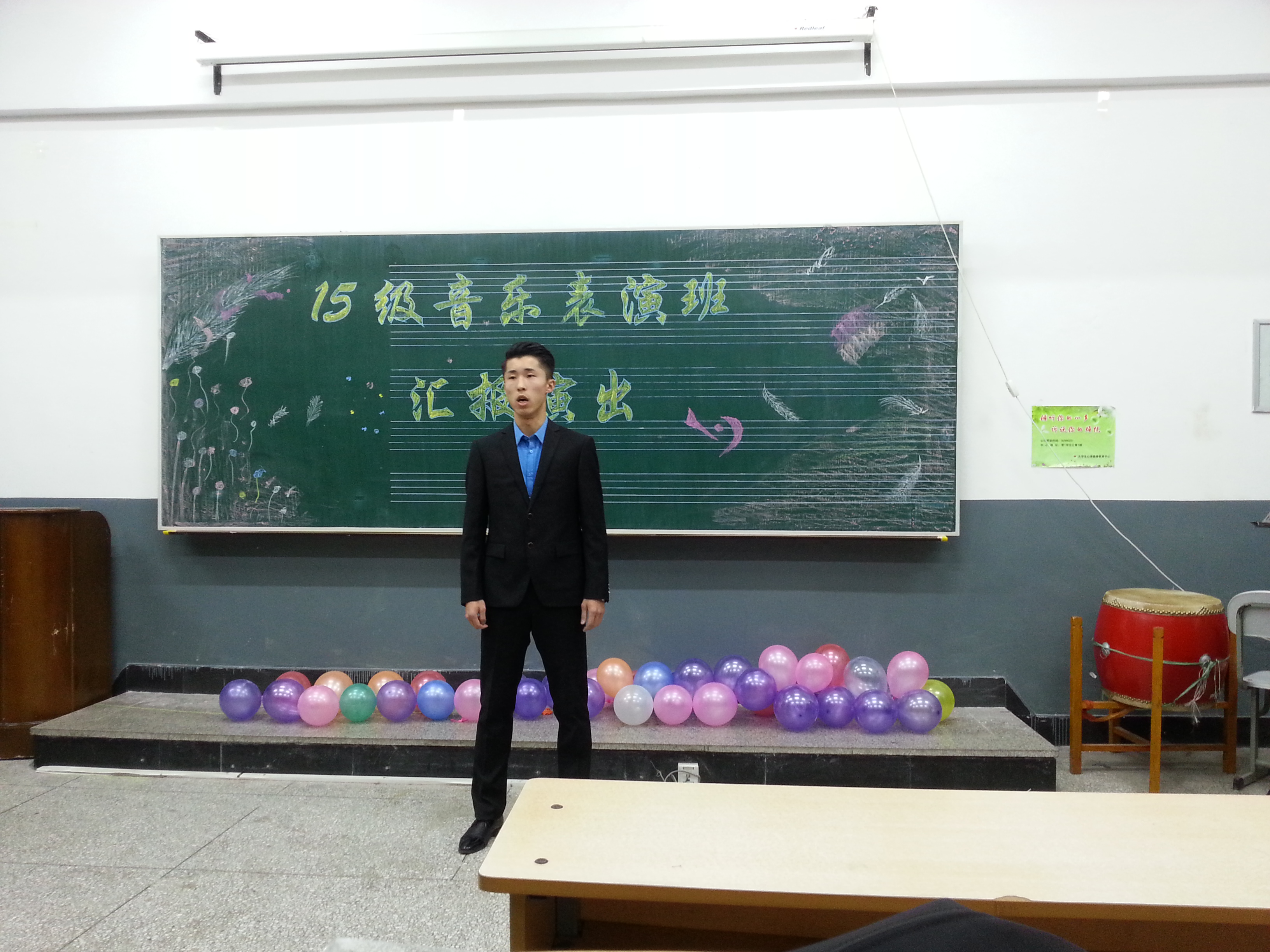 2015年11月16日,我院2015级音乐表演专业新生在8106教室举办了新生汇报演出,副院长任会平、音乐表演系主任臧婉等领导和教师观看了此次演出。