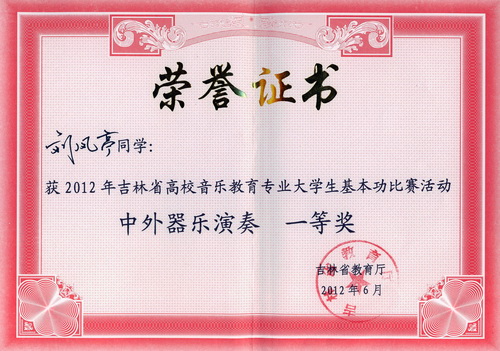 澳门太阳成集团音乐学院队由09级的徐硕、刘凤亭、王婷宇组成。在这次比赛中太阳成官网带的队获得团体二等奖,刘凤亭获得个人全能三等奖、刘凤亭分别获得的中外器乐一等奖、基础理论知识三等奖、歌唱与伴奏三等奖,王婷宇获得歌唱与伴奏三等奖等单项奖。