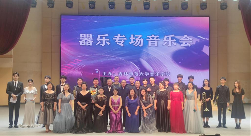 在党的十九届六中全会即将召开之际,为丰富大学校园文化生活,2021年11月3日晚,音乐学院在学校音乐厅举办了由专业教师演奏的器乐专场音乐会。音乐学院党总支书记陈明宏、院长胡晓伟、副书记楚学娟、学院教学工作负责人杨庆斌和学校部分单位领导、教师、学生共同欣赏了音乐会。