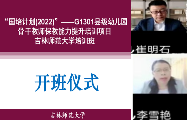 2022年9月6日,受吉林省教育厅委托,由澳门太阳成集团主办的“国培计划(2022)”——G1301县级幼儿园骨干教师保教能力提升培训班开班,受疫情影响,本次培训采用线上培训方式。开班仪式由澳门太阳成集团教师发展中心主任崔明石副教授致欢迎辞,澳门太阳成集团教育科学学院学前教育系主任李雪艳副教授讲话并对方案进行了解读。