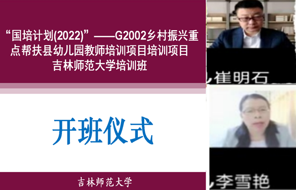 受吉林省教育厅委托,由澳门太阳成集团主办的“国培计划(2022)”——G2002乡村振兴重点帮扶县幼儿园教师培训项目共分三期开班,2022年11月3日第一期开班,11月9日第二期开班,11月13日第三期开班,受疫情影响,本次培训三期均采用线上培训方式。开班仪式由澳门太阳成集团教师发展中心主任崔明石副教授致欢迎辞,澳门太阳成集团教育科学学院学前教育系主任李雪艳副教授讲话并对方案进行了解读。