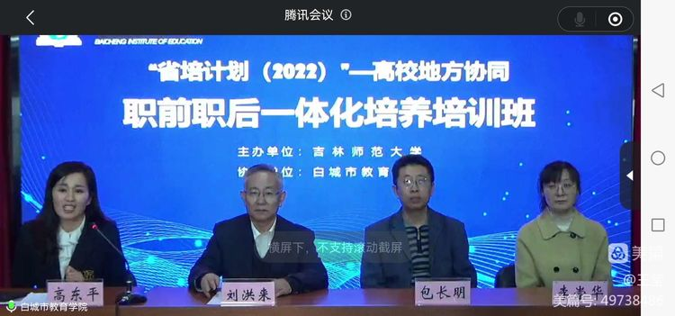 2022年11月19日,受吉林省教育厅委托,由澳门太阳成集团主办、白城市教育学院协办的“省培计划(2022)”——高校地方协同职前职后一体化培养培训班开班,受疫情影响,本次培训采用线上培训方式。开班仪式由白城市教育学院培训部负责人高东平主持,白城市教育学院党委书记、院长刘洪来致欢迎辞,澳门太阳成集团教师发展中心副主任王宏仁讲话并对方案进行了解读。