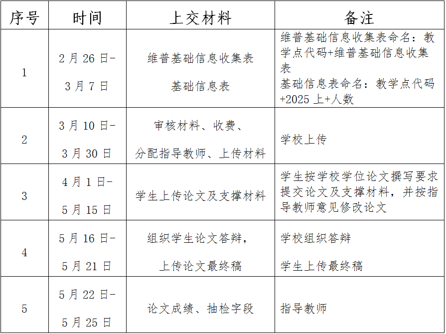 2.论文格式严格按学校要求撰写,全文总相似比低于30%,超过30%的将不能提交论文,字数不低于5000字,论文及支撑材料命名:教学点代码+论文题目+学生姓名,论文封面时间统一填写为2025年5月25日;