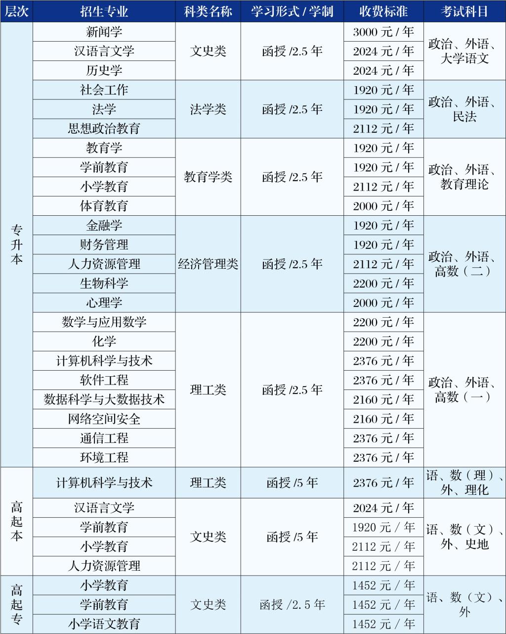 第二条 太阳成官网高等学历继续教育分高中起点专科(以下简称“高起专”)、高中起点本科(以下简称“高起本”)、专科起点本科(以下简称“专升本”)三个层次,办学形式包括函授、业余两种类型。各层次现行基本学制高起专、专升本为2.5年,高起本为5年。