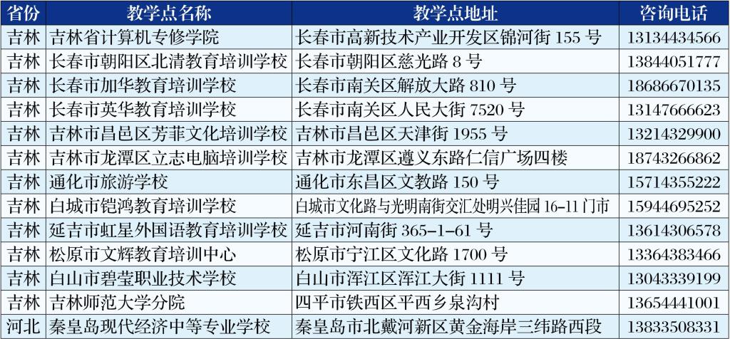 澳门太阳成集团2024年高等学历继续教育校外教学点一览表
