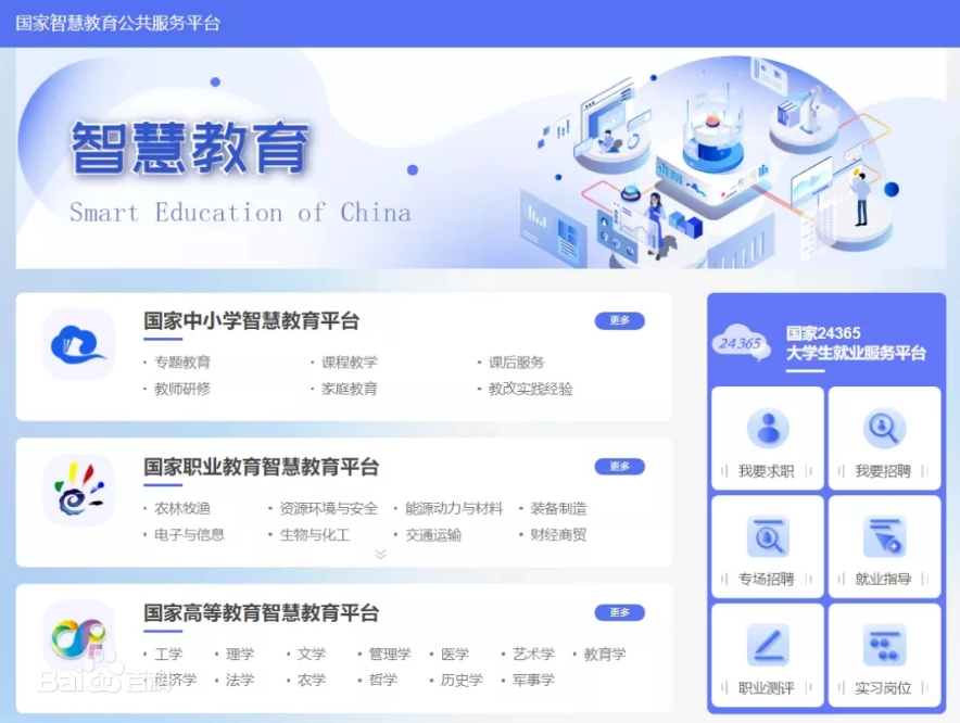 国家智慧教育公共服务平台聚合了国家中小学智慧教育平台、国家职业教育智慧教育平台、国家高等教育智慧教育平台、国家24365大学生就业服务平台等,可提供丰富的课程资源和教育服务。
