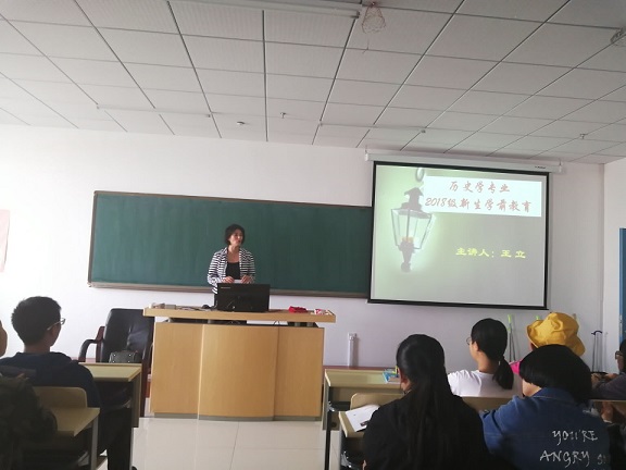历史系主任王立为历史学新生介绍了专业简介和相关学业规定,其中包括专业基本情况、专业培养目标、课程类别、考试规则、考勤方法和其他注意事项等。